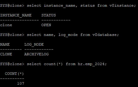 duplicate target database to 'clone'