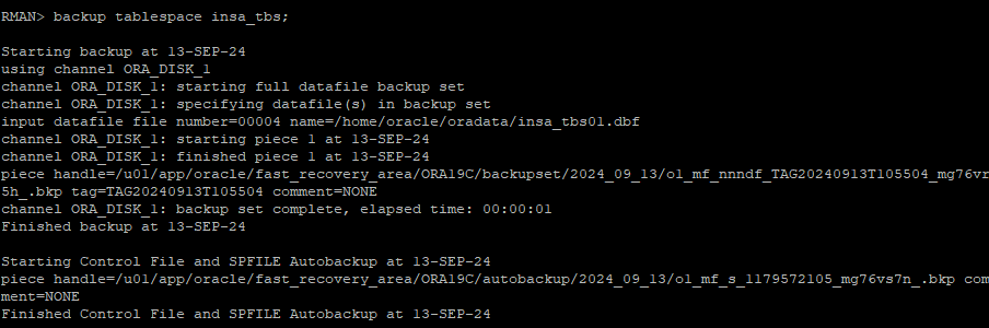 backup tablespace insa_tbs;