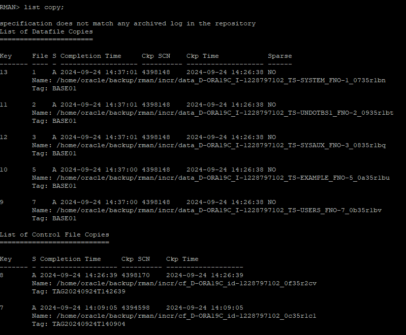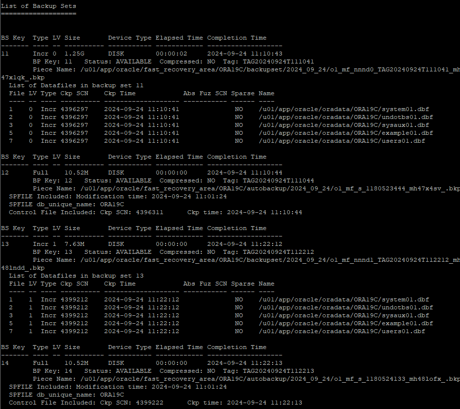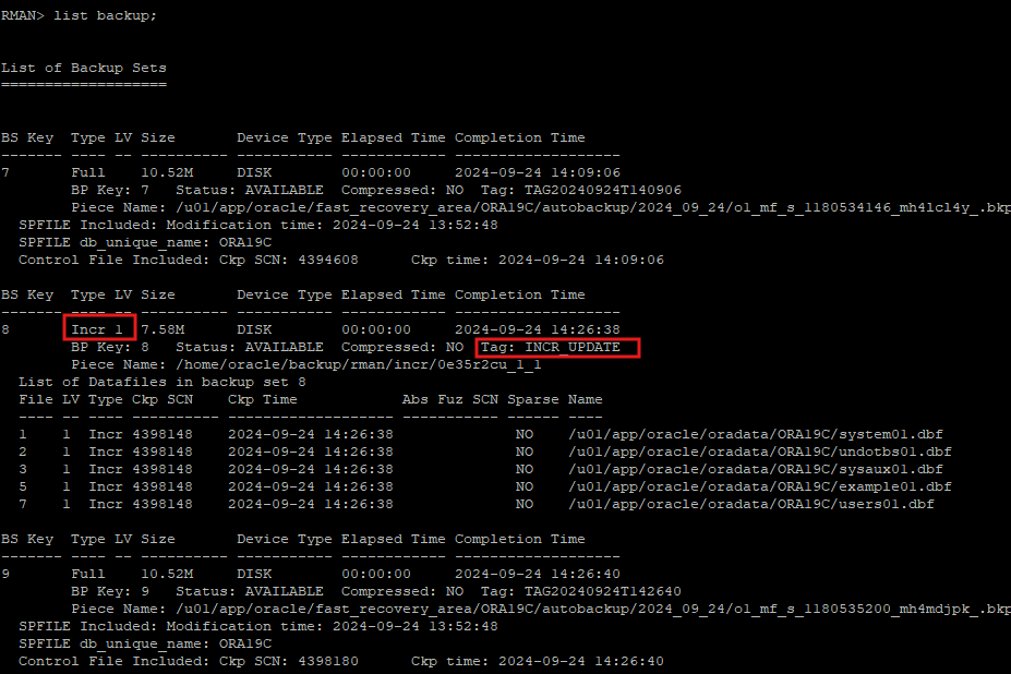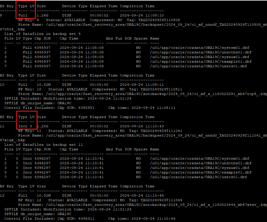 - incremental로 백업받게 되면 Type은 Incr이고 level이 0은 full backup이다.