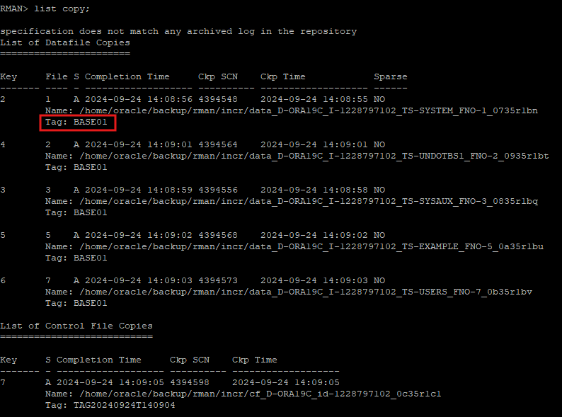 - list copy에서는 incremental level을 확일 할 방법은 없기 때문에 copy본을 생성할때 tag의 이름을 명확하게 주어 구별할 수 있게 해야한다.