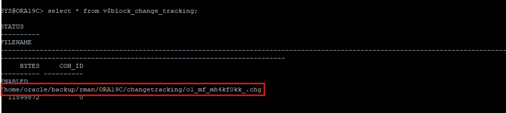 alter database enable block change tracking using file '/home/oracle/backup/rman/block_tracking.txt';
