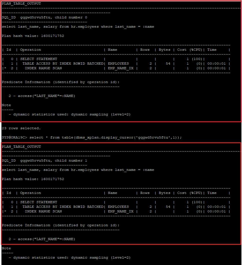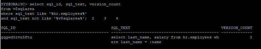 SYS@ORA19C> select last_name, salary from hr.employees where last_name = :name;