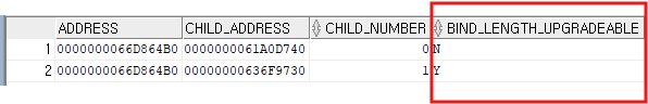 select address, child_address, child_number, bind_length_upgradeable from v$sql_shared_cursor where sql_id ='gqgwd5rvu5ftu';