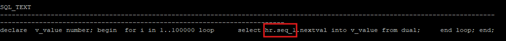 - 문제가 된 특정 sql address를 조건으로 sql 쿼리문을 확인하면 문제가 되는 시퀀스 객체를 확인할 수 있다.