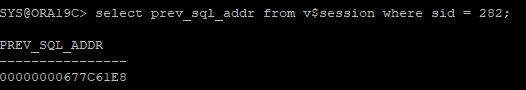 where address=(select prev_sql_addr from v$session where sid = 282);