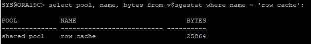 select pool, name, bytes from v$sgastat where name = 'row cache';