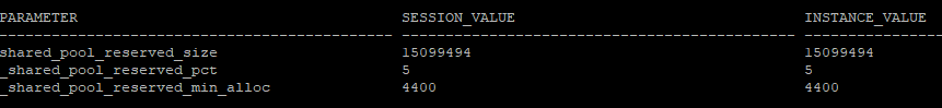 and a.ksppinm in ('shared_pool_reserved_size','_shared_pool_reserved_pct','_shared_pool_reserved_min_alloc');