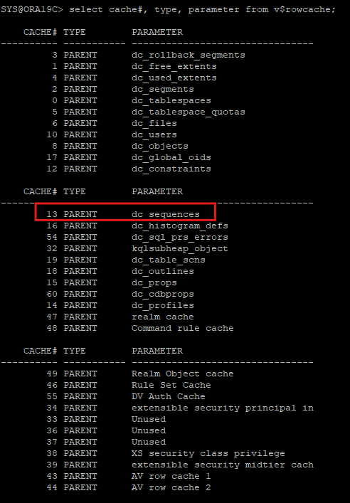from v$rowcache_parent h, v$rowcache_parent w, v$session s
