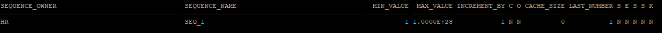 select * from dba_sequences where sequence_owner='HR' and sequence_name='SEQ_1';