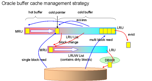 물리적인 I/O 발생시에 LRU 메인 리스트를 40%까지 free buffer를 찾는데, 못찾을 경우에 서버프로세스는 DBWR에게 dirty buffer를 파일에 기록하도록 요청한다.