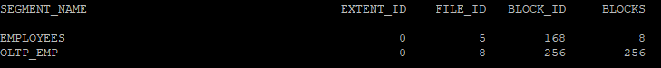 and segment_name in ('EMPLOYEES','OLTP_EMP');