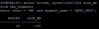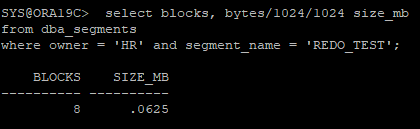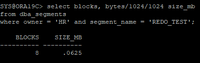 where owner = 'HR' and segment_name = 'REDO_TEST';