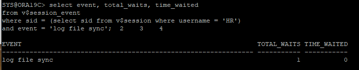 - log file sync 이벤트에 대한 대기 정보를 조회