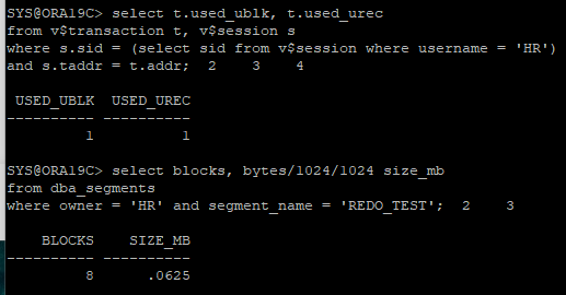 create table hr.redo_test(id number, name char(100)); : create 문장으로 인해 redo entry 생성 insert into hr.redo_test(id, name) select object_id, object_name from user_objects; : DML 작업으로 인해 redo entry 생성- sys session