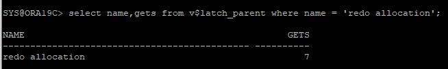 select name,gets from v$latch_parent where name = 'redo allocation';