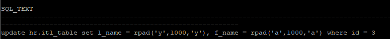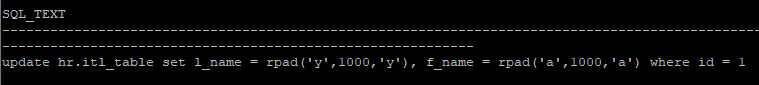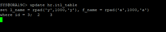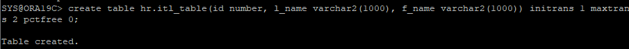 create table hr.itl_table(id number, l_name varchar2(1000), f_name varchar2(1000)) initrans 1 maxtrans 2 pctfree 0;