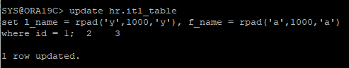 set l_name = rpad('y',1000,'y'), f_name = rpad('a',1000,'a')