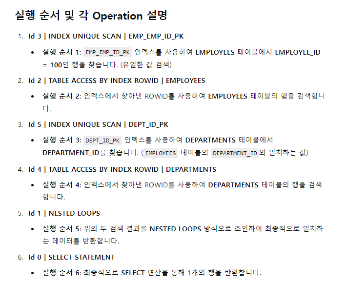설명: DEPARTMENTS 테이블에서 조회한 LOCATION_ID를 사용하여, LOCATIONS 테이블에서 LOC_ID_PK 인덱스를 사용하여 해당 LOCATION_ID를 조회합니다.