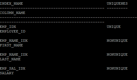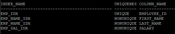 and ix.table_name = 'EMP'