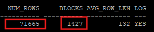 select num_rows, blocks, avg_row_len, logging
