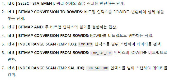 설명: DEPT_ID_PK 인덱스를 통해 찾아낸 ROWID를 사용하여 DEPARTMENTS 테이블에서 해당 행을 조회합니다.