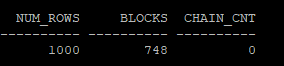 select num_rows, blocks, chain_cnt from dba_tables where owner='HR' and table_name = 'MIG_TABLE';