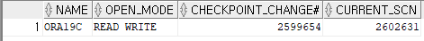 SELECT name, open_mode,checkpoint_change#, current_scn FROM v$database;