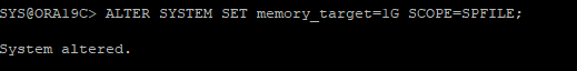 오라클에 할당된 메모리 공간은 900m 이지만 고의적으로 MEMORY_TARGET, MEMORY_MAX_TARGET을 1G로 설정하였다.