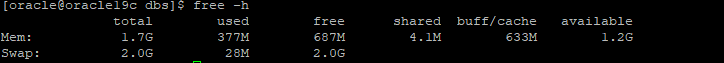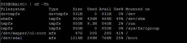 [root@oracle19c ~]# mount -t tmpfs(Type) shmfs(변경이름) -o size=900m /dev/shm