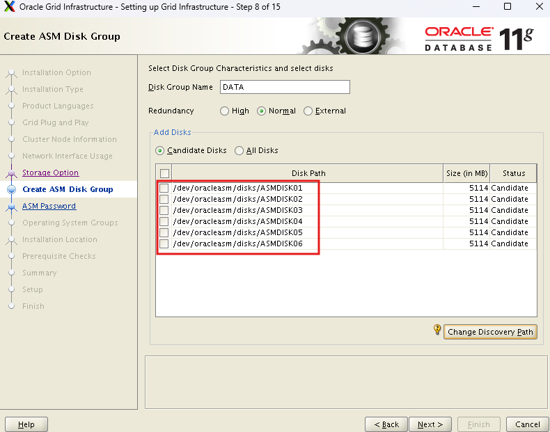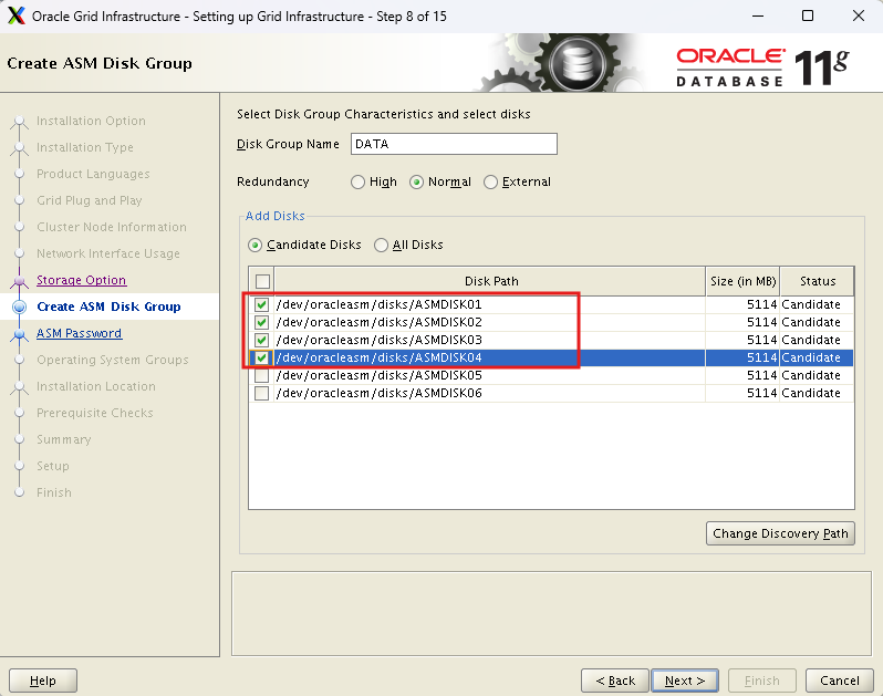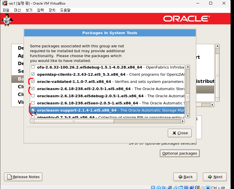 oracle validated~ 체크하고 바로 밑에 oracleasm 체크