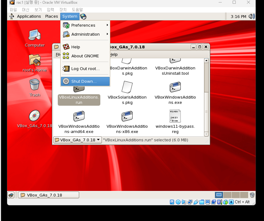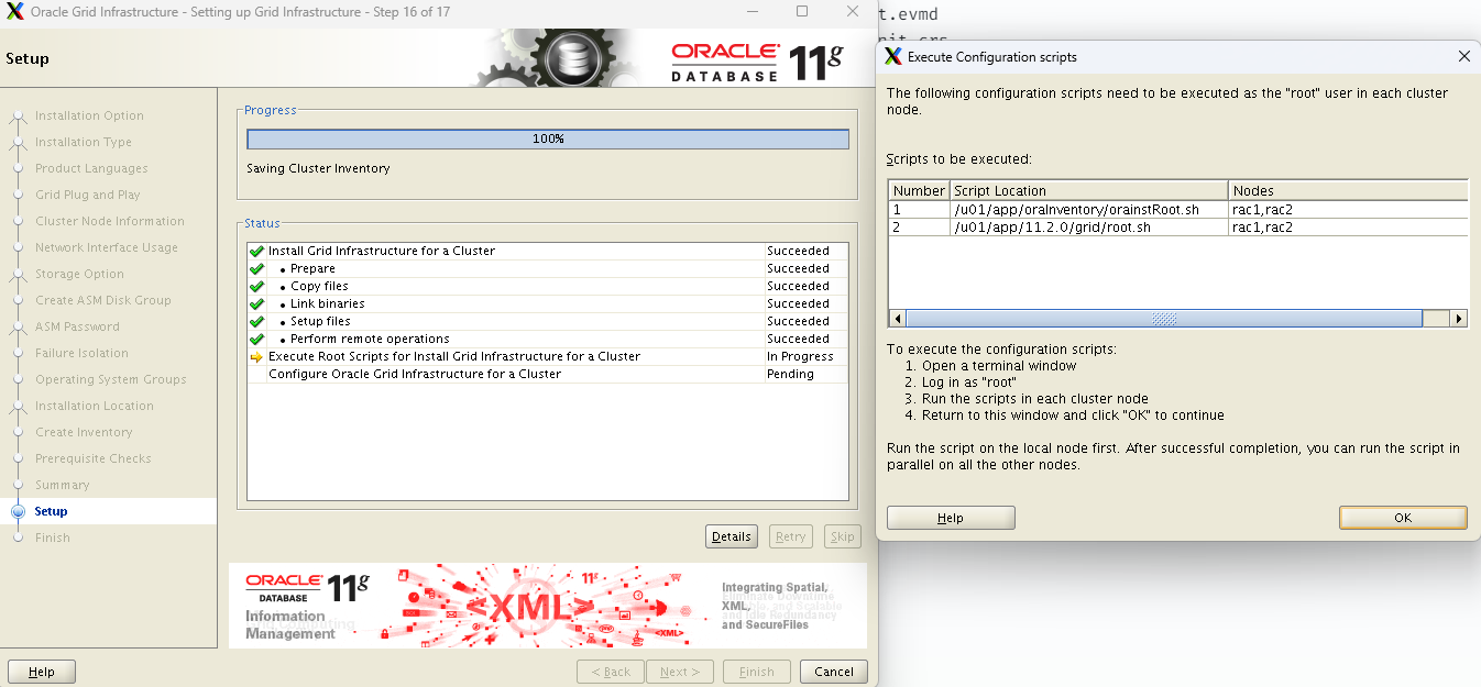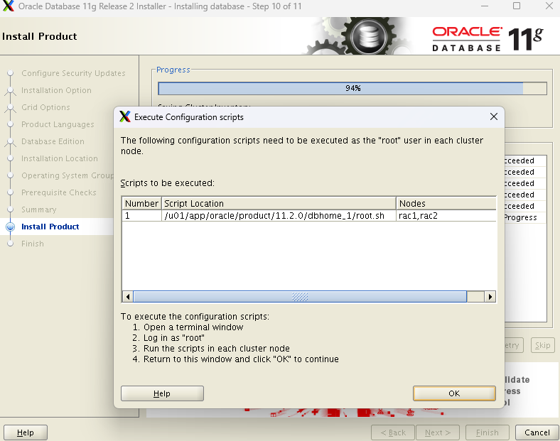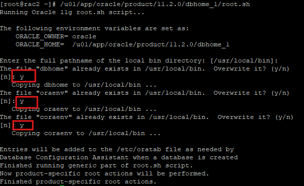 rac1,rac2 root 계정에서 해당 스크립트 실행