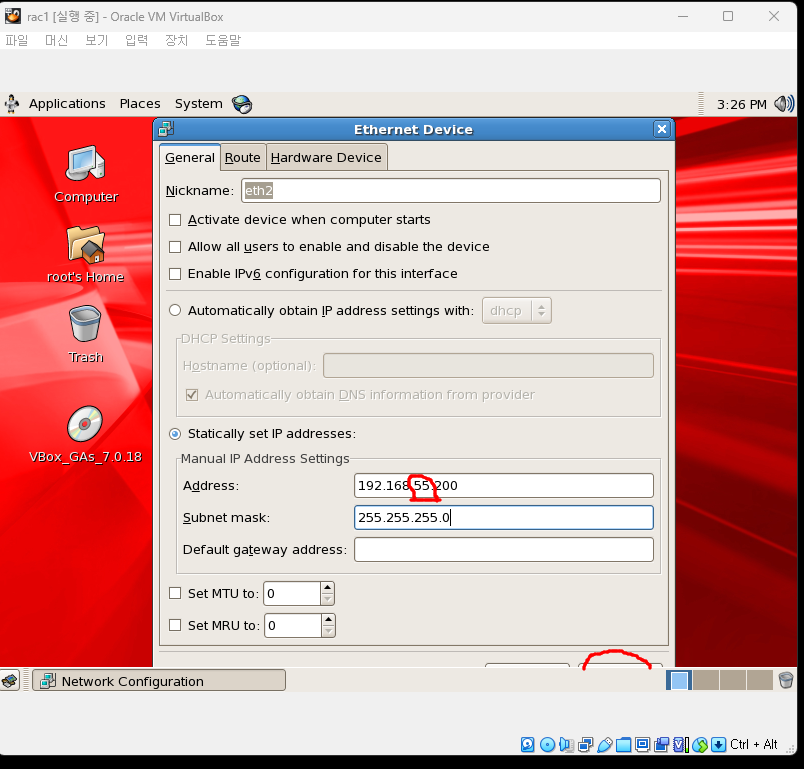이더넷1로 들어가서 ip주소를 설정해줘야한다.