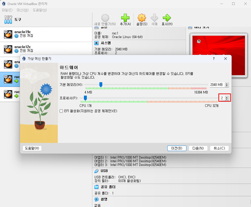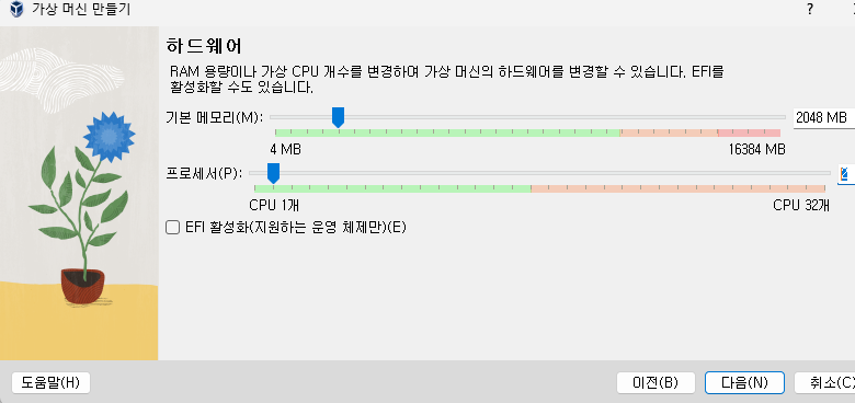 램 2G이상이면 설치가능(기본), 프로세서 2개
