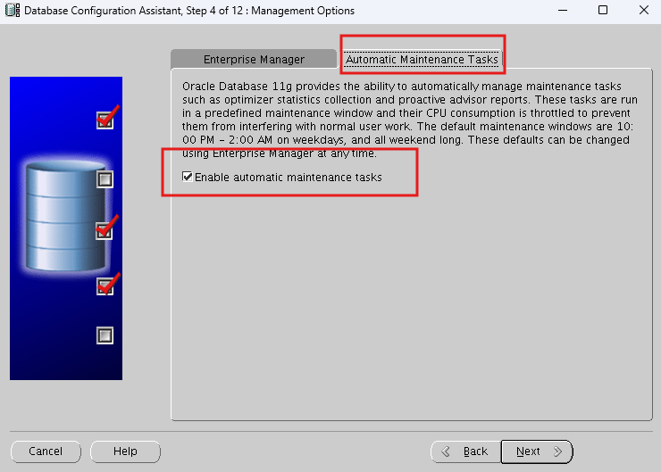 오라클이 자동으로 수행하는 옵션(통계수집, 쿼리튜닝, 저장공간 최적화)
