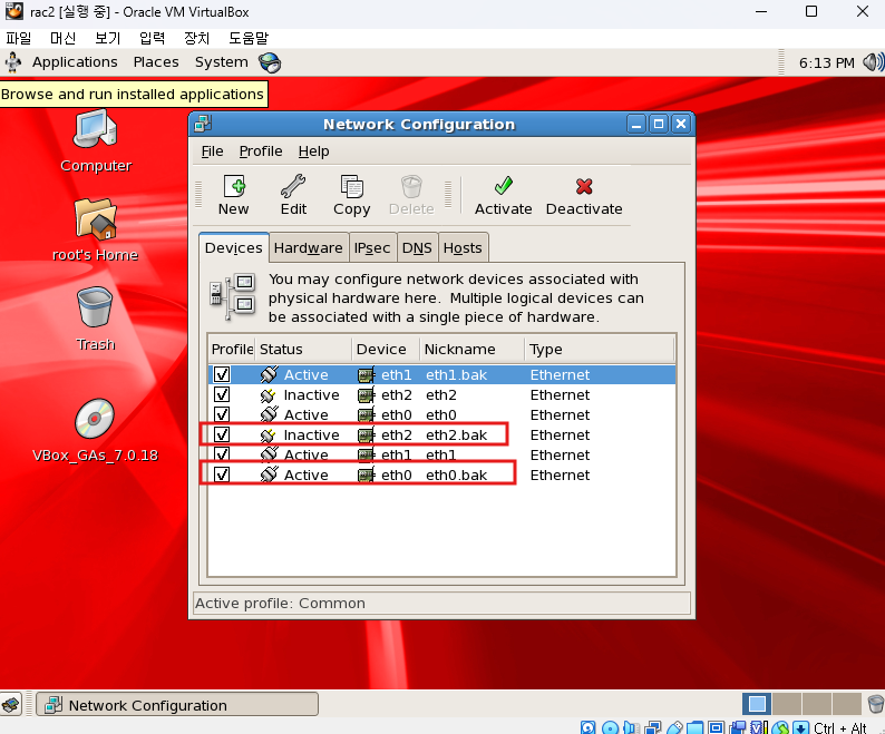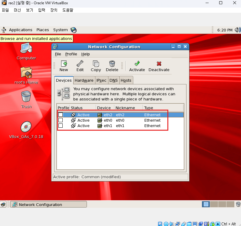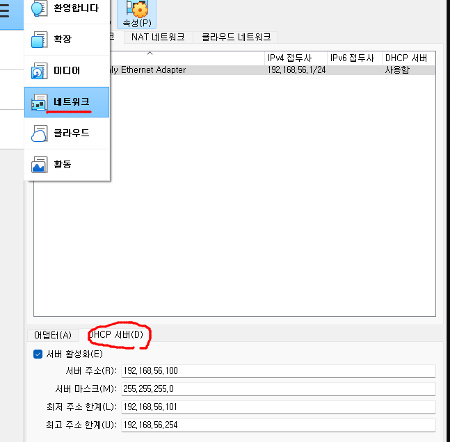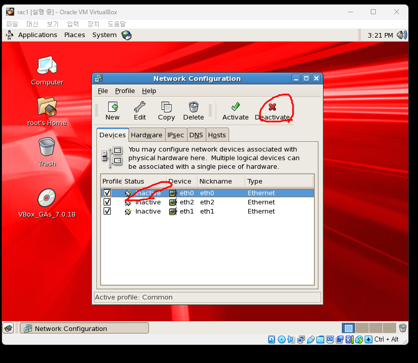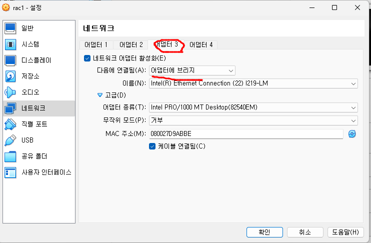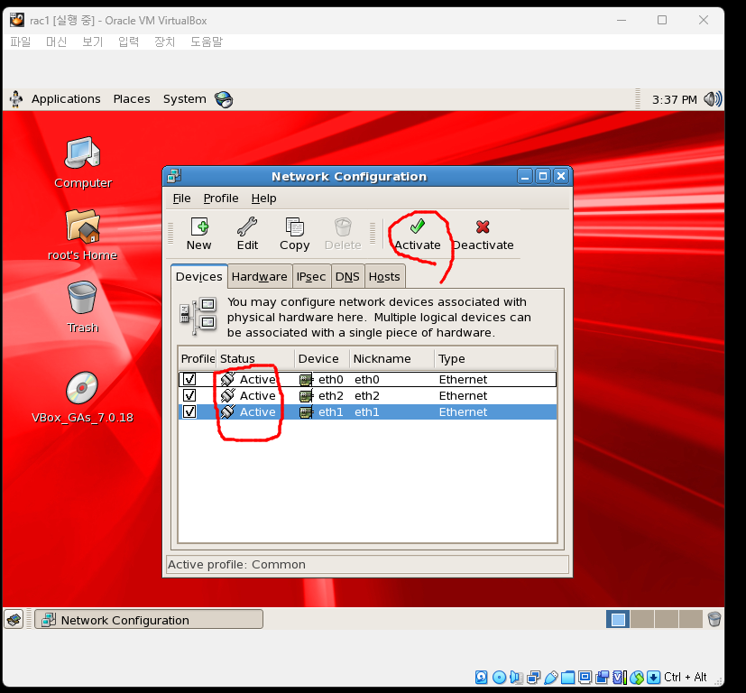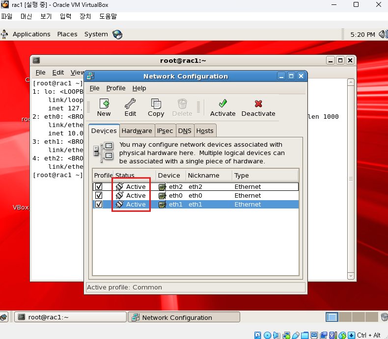 3개 이더넷을 모두 active상태로 변경후 나가기