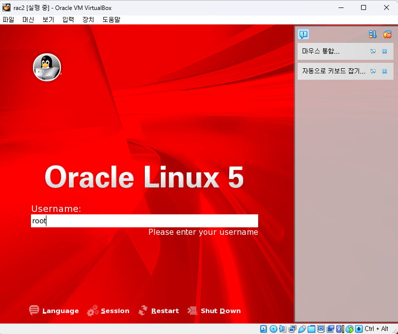 기다리면 해당화면이 나오는데 root/oracle로 접속해준다.