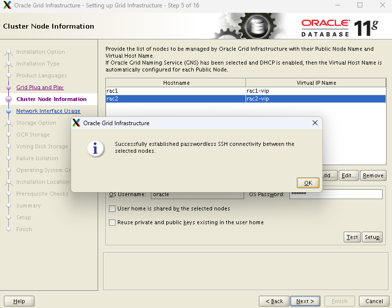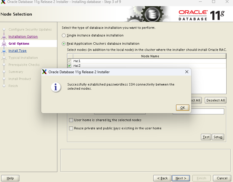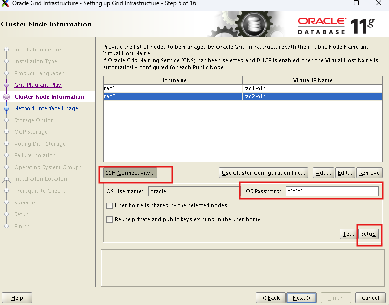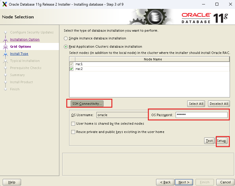 rac1 과 rac2를 왔다갔다 하기위해 ssh connectivity 설정