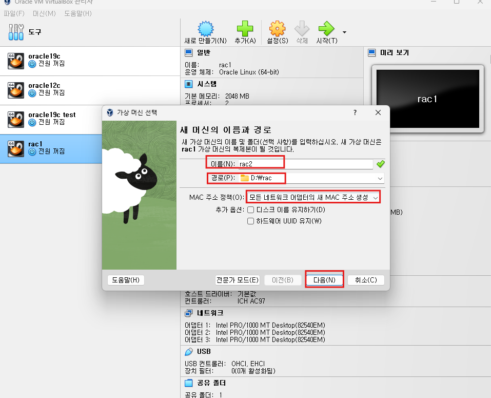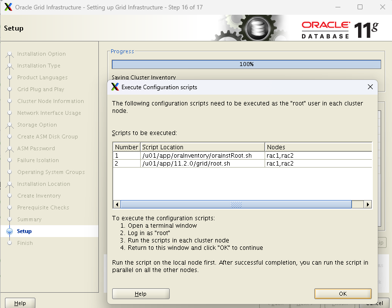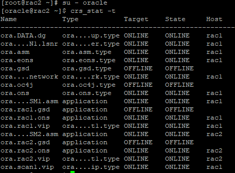 rac1에서 2번 스크립트를 돌리고 나서 rac2에서 2번 스크립트를 돌린다.
