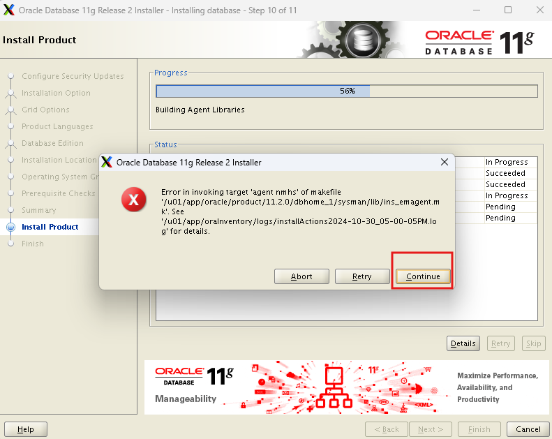vi /u01/app/oracle/product/11.2.0/dbhome_1/sysman/lib/ins_emagent.mk 문자열 찾기