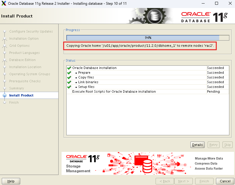 rac1 node에 설치한걸 rac2 node에도 copy 해준다.