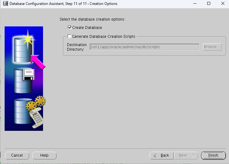 sqlplus로 접속 후 DB가 생성되었는지 확인