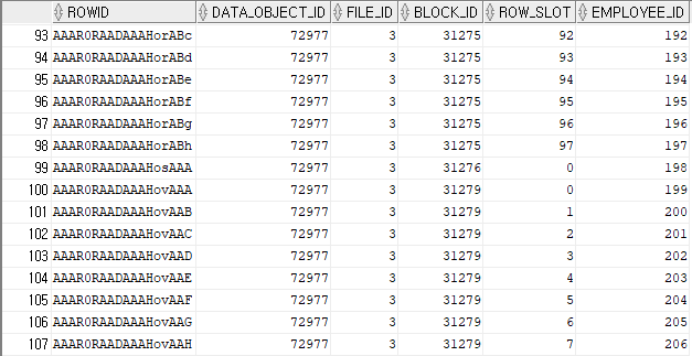 dbms_rowid.rowid_row_number(rowid) as row_slot, -- 로우 슬롯 ID