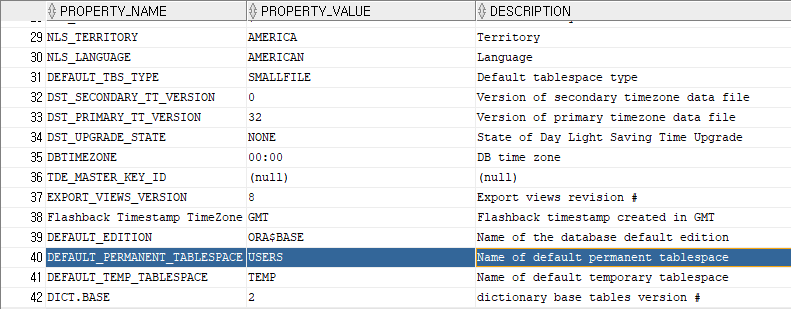 SELECT * FROM database_properties;