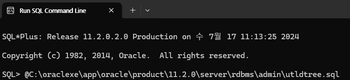 @C:\oraclexe\app\oracle\product\11.2.0\server\rdbms\admin\utldtree.sql