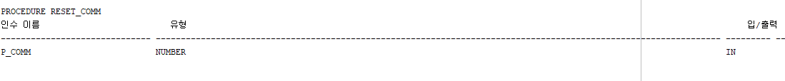 PROCEDURE reset_comm(p_comm IN number); -- 프로시저 해드 부분까지 선언, 함수는 RETURN 절까지