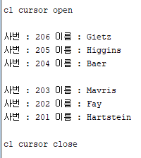 EXECUTE pack_cur.open; --패키지에서 cursor open