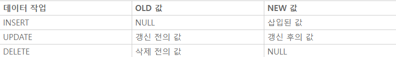 - old : 트리거가 처리한 레코드의 원래값을 저장한다.