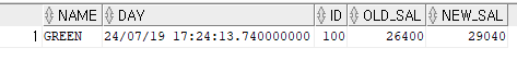 VALUES (USER,SYSTIMESTAMP,:new.employee_id,:old.salary,:new.salary);