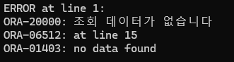 기본 오라클 오류와 내가 만든 오류가 둘다 나온걸 볼 수 있다.
