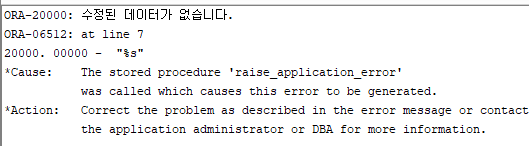 RAISE_APPLICATION_ERROR(-20000,'수정된 데이터가 없습니다.');